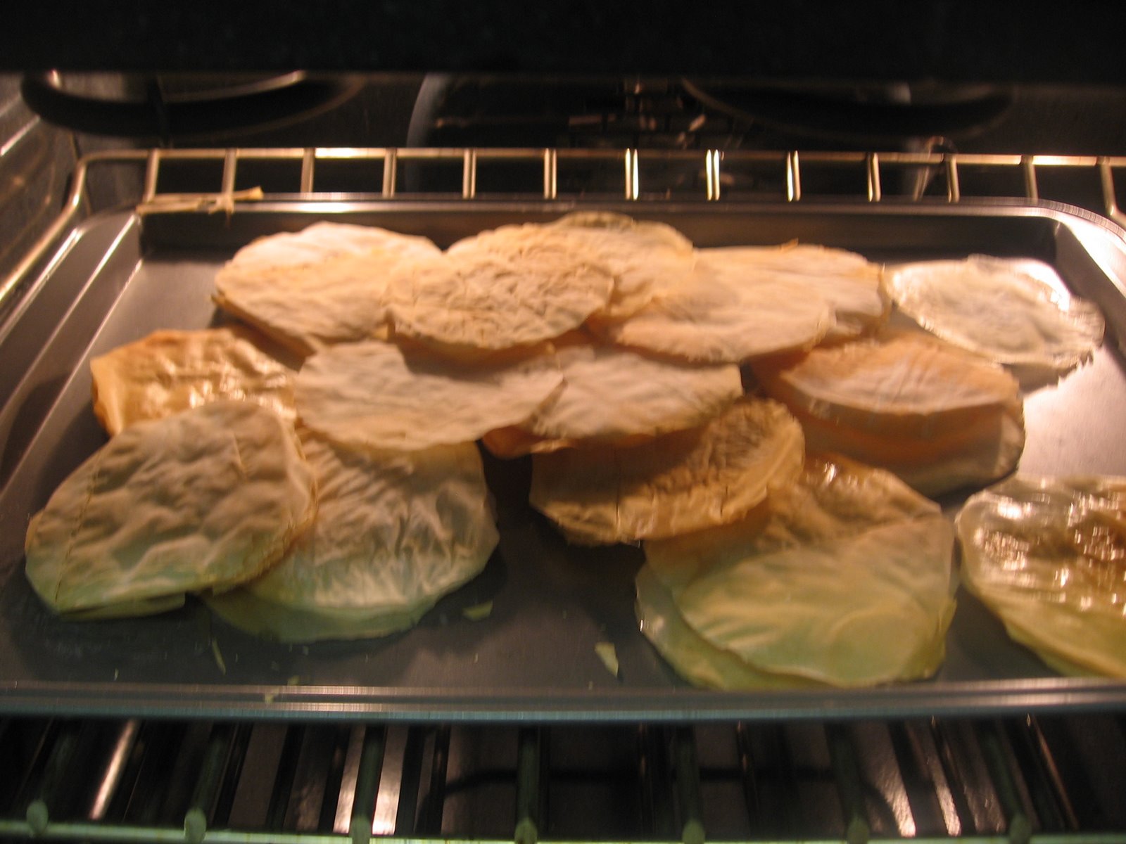 2. Melt 1 tablespoon butter. Use a brush or carefully pour small amount of butter onto top layer of dough circles. Put in oven for 10-15 minutes or until slightly brown. Watch carefully as thy can burn fast after slightly browned.