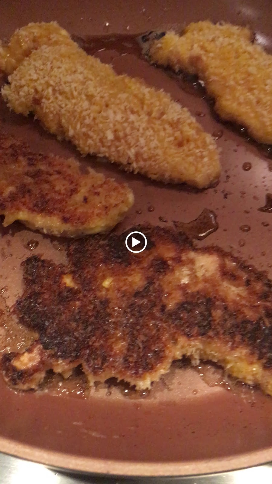 If you get it thin (¼” thickness), in the same time that it takes to get a golden brown, the inside of the chicken gets cooked through because its so thin! Just remember even thickeness = even cooking.